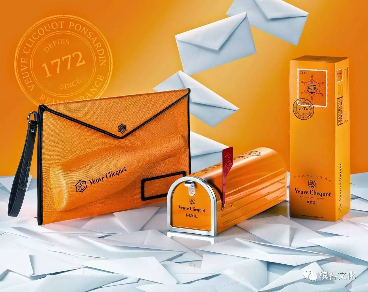 這是凱歌香檳經(jīng)典的信封手提包設(shè)計(jì),醒目的橙黃色為主色調(diào),大面積的使用讓該包裝能夠在第一時(shí)間抓住人的視線。包裝的邊緣是棕色的,還有一條棕色的腕帶,讓整體包裝色調(diào)變得豐富、有層次起來(lái),包上還有一條棕色的腕帶。腕帶的設(shè)計(jì)是為了方便進(jìn)行攜帶,這樣客戶在趕路的時(shí)候就可以很容易地把它帶在身邊了。