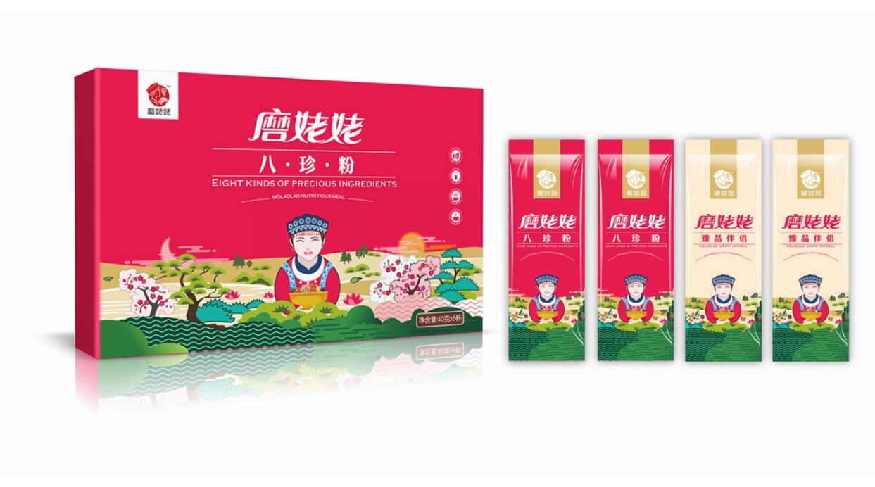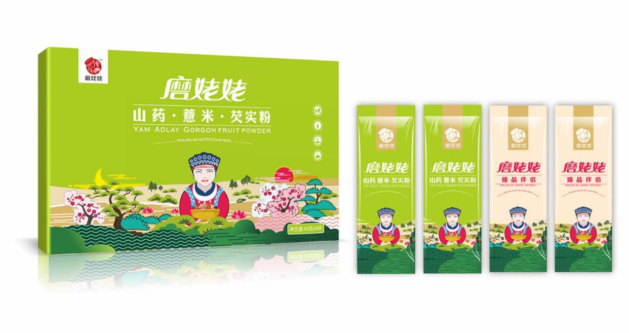 當(dāng)產(chǎn)品在市場上得到消費(fèi)者的認(rèn)同后,一個偶然的機(jī)會,信立浩達(dá)與磨姥姥達(dá)成合作,為磨姥姥提供品牌形象設(shè)計(jì)、產(chǎn)品包裝設(shè)計(jì),用文創(chuàng)品牌的思維,塑造了磨姥姥新的品牌形象,45天內(nèi),我們從武漢到長沙,從長沙到武漢,經(jīng)過了大量的市場調(diào)研、腦力風(fēng)暴,挖掘了中國傳統(tǒng)食文化、養(yǎng)生文化,設(shè)計(jì)出了磨姥姥的品牌主畫面,品牌標(biāo)志、系列的產(chǎn)品包裝設(shè)計(jì),還有招商網(wǎng)站、招商畫冊、宣傳廣告、海報(bào)等:益元八珍營養(yǎng)早餐, 一天一杯磨姥姥,健康快樂一整天!山藥薏米芡實(shí),我要想吃就吃不長肉!紅豆薏米杏仁,我要貌美如花人人夸!核桃芝麻黑豆,養(yǎng)發(fā)烏發(fā)。武漢農(nóng)產(chǎn)品包裝設(shè)計(jì)公司信立浩達(dá)用品牌設(shè)計(jì)的力量協(xié)助磨姥姥在全國招商成功!